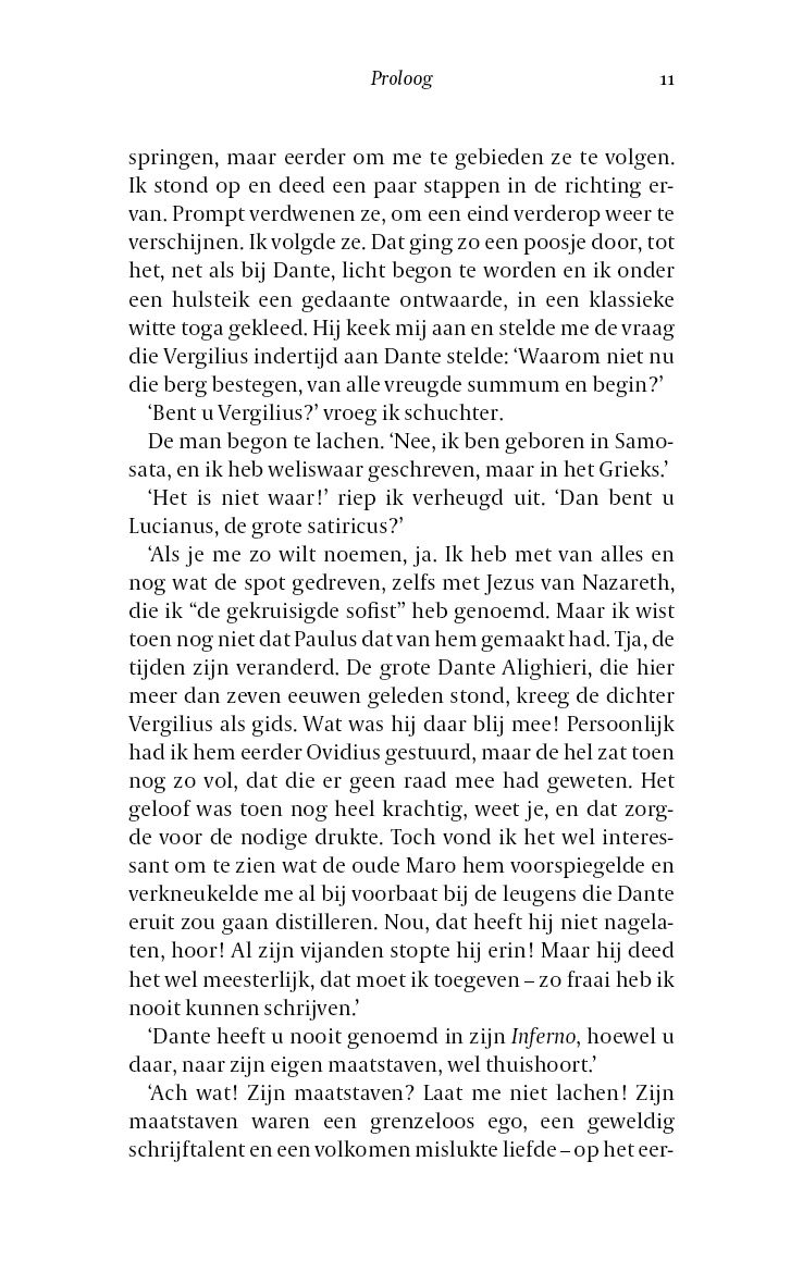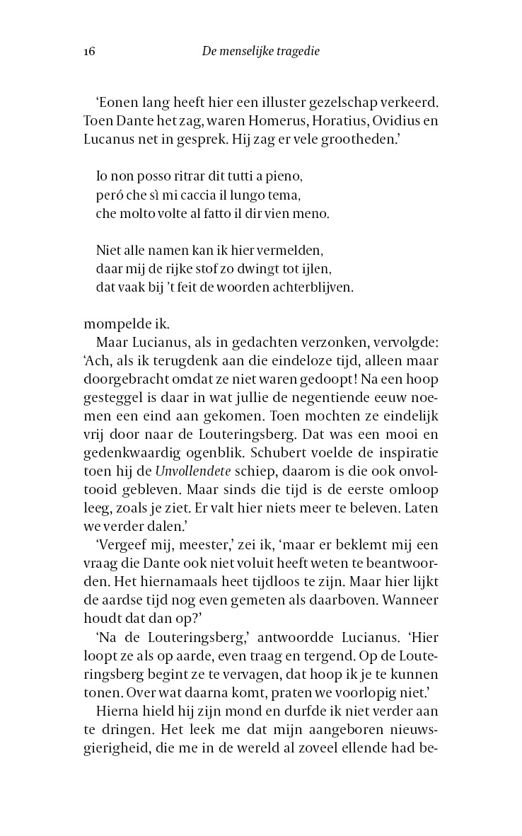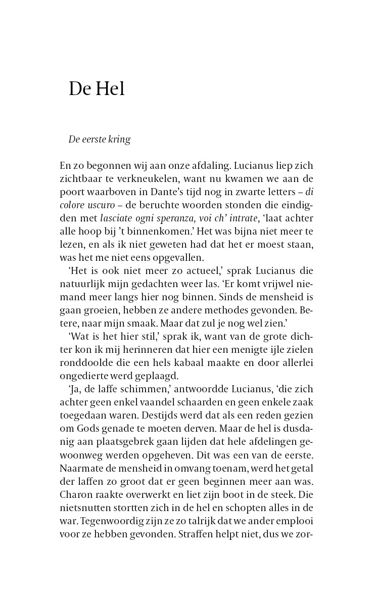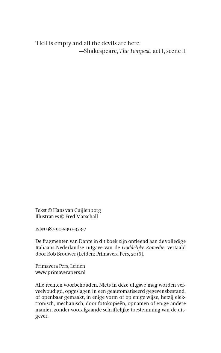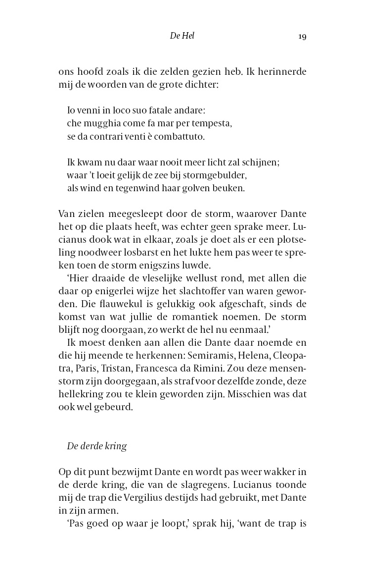 Daarmee begint een reis die is geïnspireerd door de Divina Commedia van Dante Alighieri (ca. 1265-1321). Maar Hans van Cuijlenborg is niet geïnteresseerd in een simpele hervertelling in modern Nederlands. De hel én de Louteringsberg zijn sinds het bezoek van Dante immers erg veranderd.
