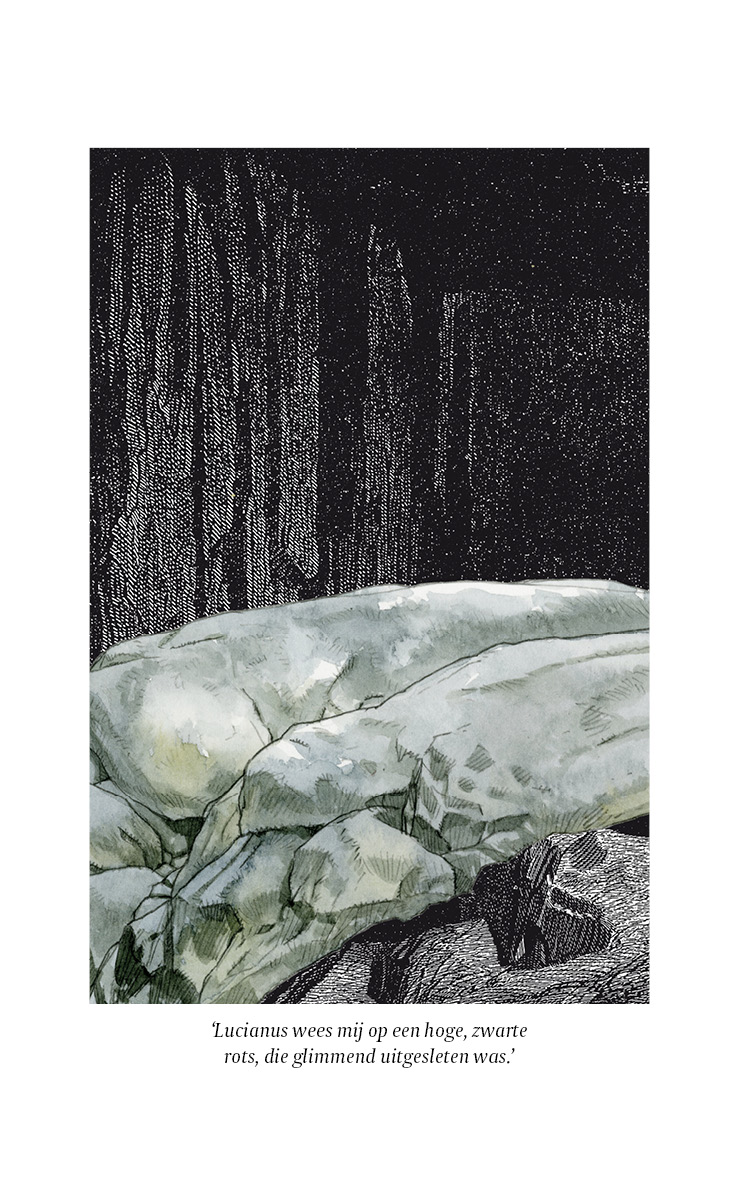Tijdens een wandeling in de buurt van Les Baux-en-Provence raakt de verteller de weg kwijt in een donkere grot en valt in slaap. Als hij wakker schiet, ontwaart hij twee lichtende ogen. Hij gaat op onderzoek uit en ontmoet een man in klassiek tenue, die zichzelf introduceert als de Griekse schrijver Lucianus van Samosata.