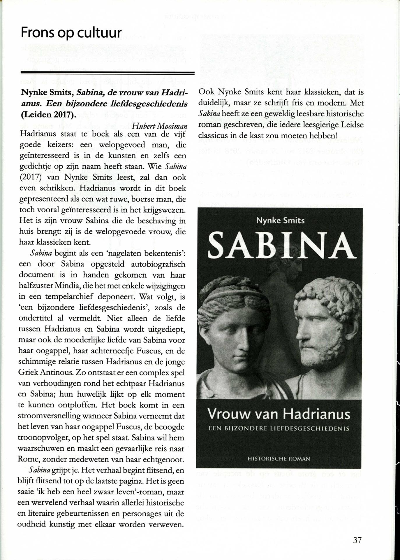 Frons: Blad voor Leidse Classici schreef over het boek (november 2017): “Sabina grijpt je. Het verhaal begint flitsend, en blijft flitsend tot op de laatste pagina.”