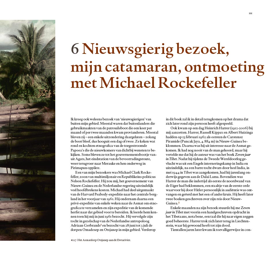 Dit boek bevat niet alleen het boeiende verhaal van Van de Waals ervaringen, waaronder het omstreden onderzoek naar de verdwijning van Michael Rockefeller, maar ook een selectie uit de vele indrukwekkende foto’s die hij destijds genomen heeft – foto’s die alleen al bijzonder zijn, omdat er nauwelijks kleurenopnamen van Papoea’s bekend zijn uit deze tijd. Van de Waals persoonlijke getuigenis in woord en beeld maakt dit boek tot een uniek document.