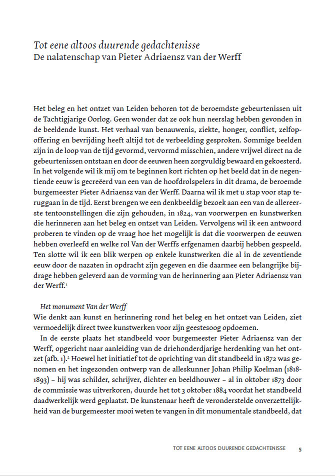 Wie denkt aan de kunst rond het beleg en ontzet van Leiden, 2018 denkt waarschijnlijk in de eerste plaats aan het standbeeld voor burgemeester Van der Werff in het naar hem genoemde parkje, of aan het reusachtige schilderij van Van Bree in De Lakenhal.