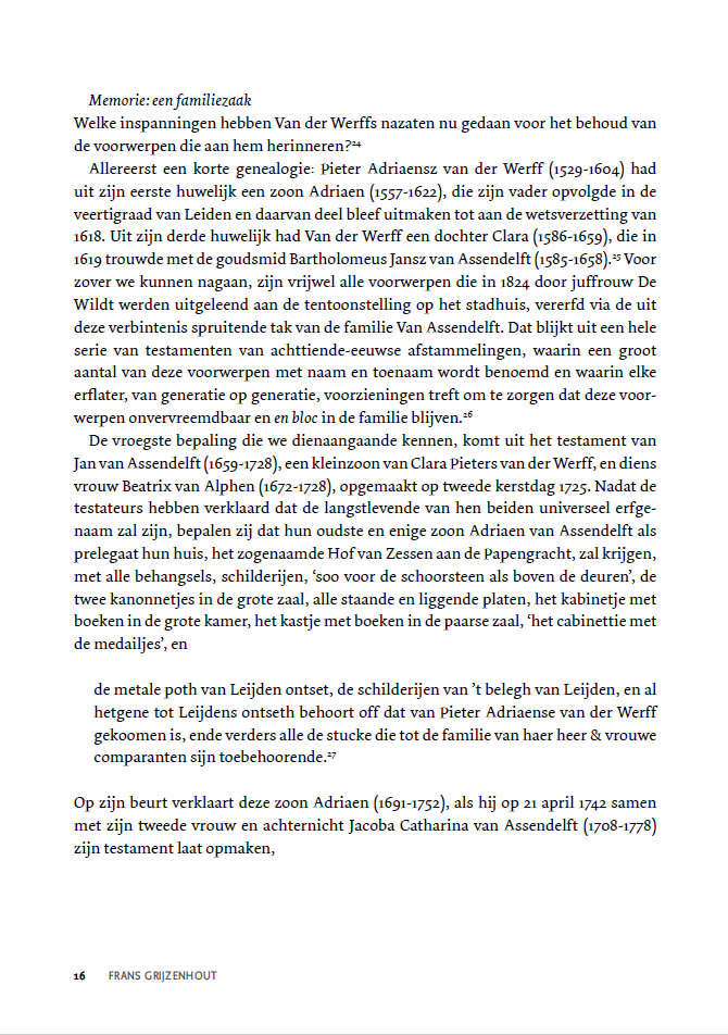 Maar Van der Werff is al veel eerder en in heel veel andere kunstwerken (penningen, bustes, schilderijen, prenten, etc.) vereeuwigd en vereerd. In opdracht van wie en voor wie werden die kunstwerken eigenlijk gemaakt? Hoe is het mogelijk dat ze de eeuwen hebben overleefd? En wat was de rol van de nazaten van Van der Werff bij de productie en het behoud van deze kunstwerken? Op deze en andere vragen zal Frans Grijzenhout tijdens deze 3-Oktoberlezing ingaan.